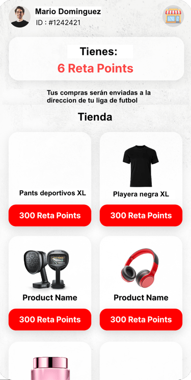 En RetaApp cada ves que anotes un gol en tu liga de futbol ganaras reta points para canjearlos por productos en nuestra tienda virtual RetaShop. Dependiendo de tu posicion en el campo y del nivel de dificultad de tu liga ganaras reta points.